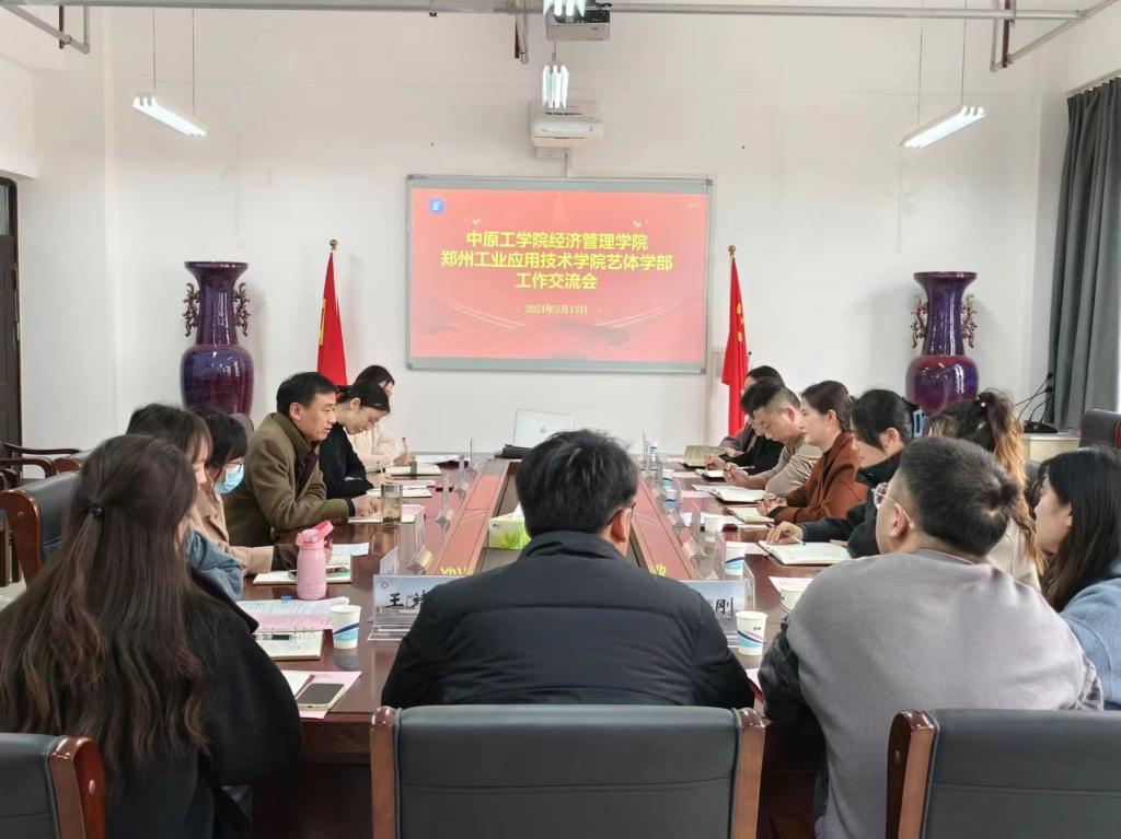 李向东对郑州工业应用技术学院一行的到来表示热烈欢迎,对学院的基本情况和党建工作开展情况进行了介绍。崔艳丽对郑州工业应用技术学院艺体学部总体情况和党建工作等进行了介绍。随后双方就党建、学风建设、学生就业、共青团工作等进行了深入的讨论和交流。