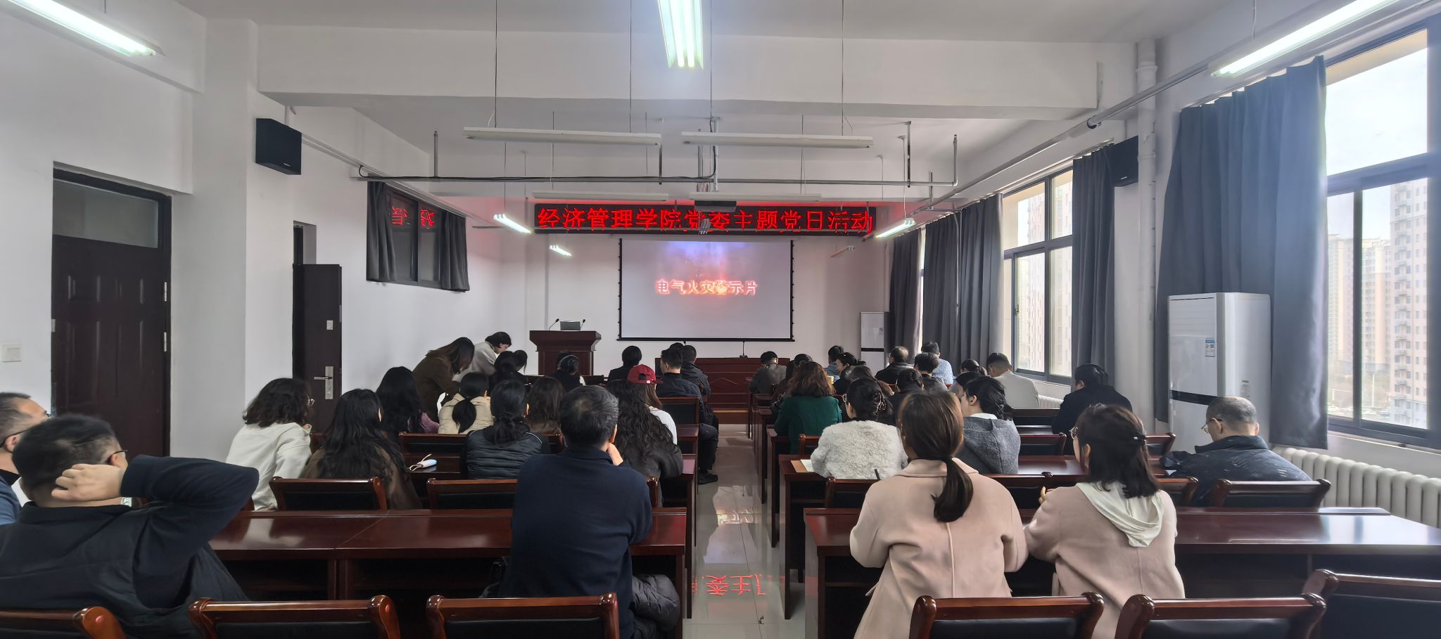 为加强消防安全教育,李向东传达了保卫处《消防案例警示》,全体人员集中观看了消防教育视频。
