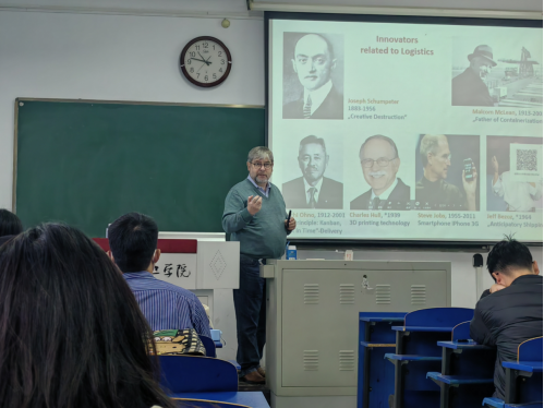 按照学院安排,Hans-Haasis教授和Janosch博士为我院师生开展了四场关于物流与供应链的研究生课程讲座,Hans-Haasis教授介绍了物流供应链领域的学术研究方向以及物流供应链管理的研究成果,分享了德国物流领域现状以及对供应链领域的独到见解。讲座吸引了广大师生积极参与,师生们与Hans-Haasis教授深入交流,学术氛围浓厚。在校访问交流期间,汉斯教授一行在孙学军教授陪同下参观了河南省智慧物流国际联合实验室并就实验室建设达成合作意向。