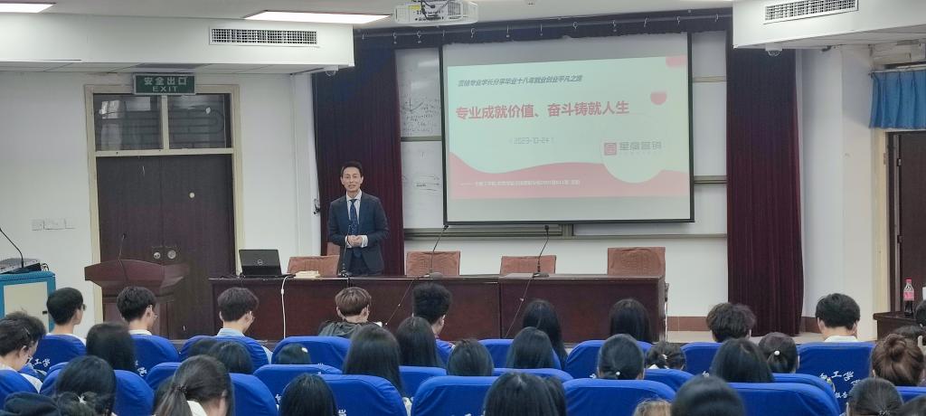 10月24日,WilliamHill中文“听学长分享就业创业的‘平凡之路’”讲座在龙湖校区四号楼311举行。郑州星彦营销战略咨询集团创始人雷阳、经理鹿正阳应邀开展讲座,我院21级、23级营销专业同学参加,讲座由学生工作办公室副主任杨文乐主持。