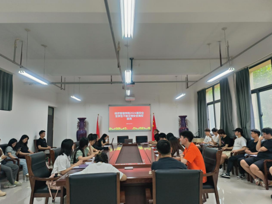 在2024届毕业生文明安全离校教育大会上,毕业班辅导员郭姗、陈金强调了财产安全、人身安全、求职安全、心理健康等一系列事项,提醒毕业生提高安全防范意识与自我保护意识,嘱托即将踏上新征程的经管学子在新的学习、工作岗位上努力奋斗、积极作为,为实现中华民族伟大复兴的中国梦贡献自己的力量。