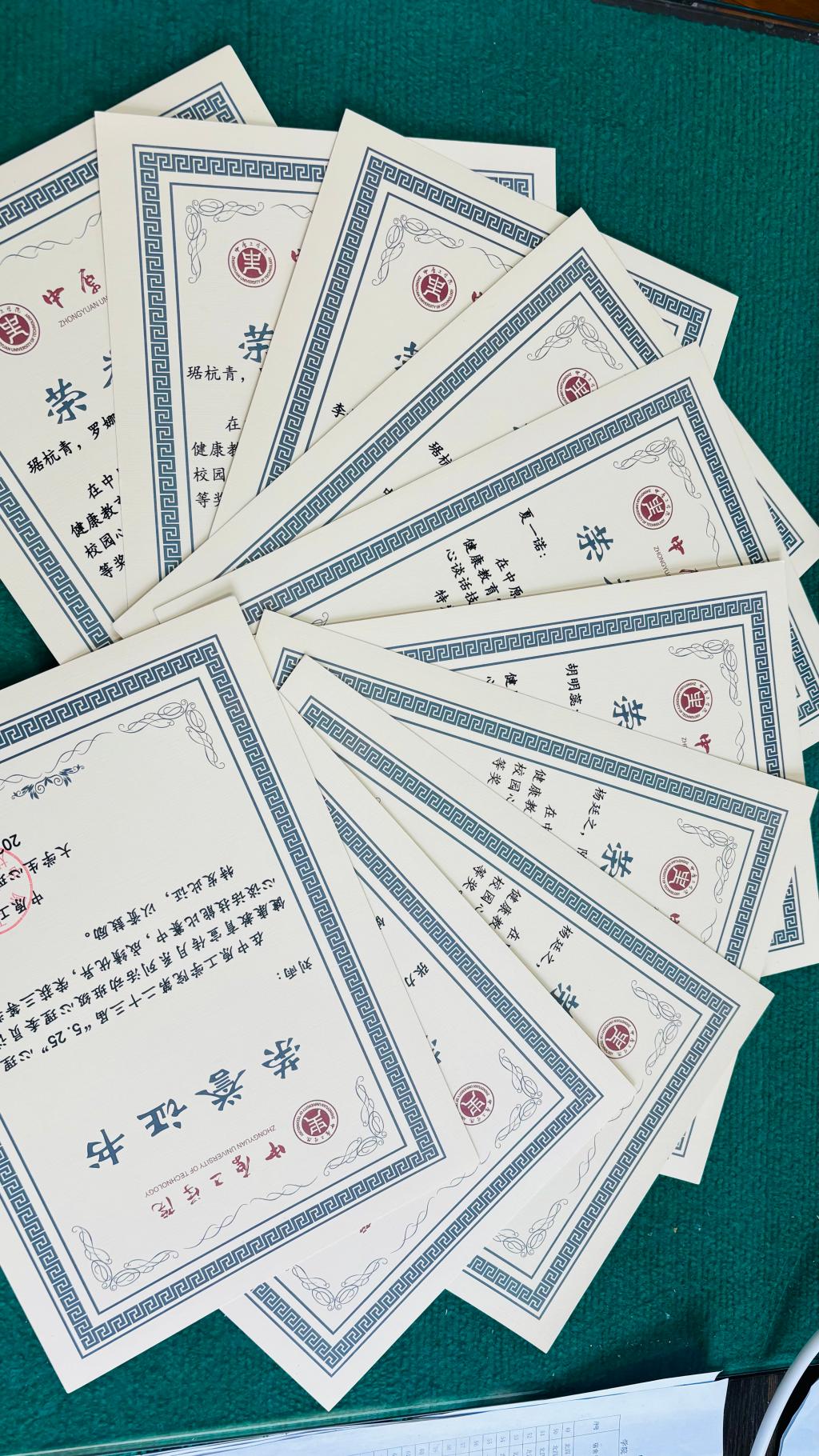 图1:第二十三届“5·25”大学生心理健康教育宣传月部分获奖证书