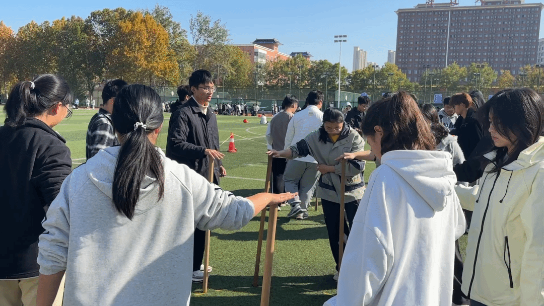 本次运动会设置了“不倒森林”“众星捧月”“环环相扣”“十人九足”等多个兼具趣味性和协作性的项目。为了这场运动会,我院学生早早开始备赛。在训练的过程中,他们经历过无数次失败,却从未轻言放弃,一次次重新尝试,只为在比赛中展现最佳风貌与姿态。
