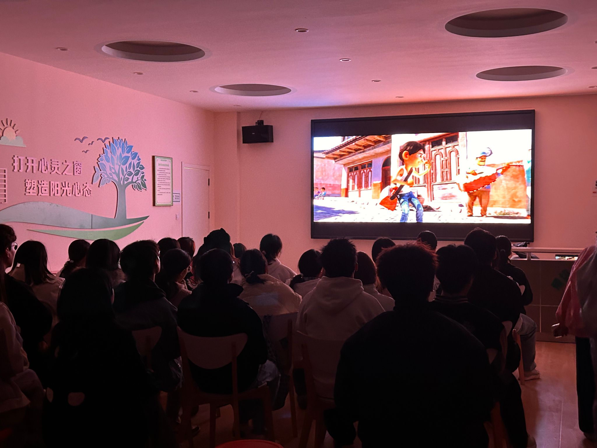 为深入关注大学生心理健康,培养学生积极乐观的人生态度,我院于2025年11月12日至13日晚在大学生心理健康中心108室成功举办两场心理主题观影活动。本次活动面向2025级全体学生,播放了《寻梦环游记》与《热烈》两部励志影片,风格迥异但主题相似,从不同维度诠释“成长”与“梦想”的内涵。以光影艺术为媒介,为同学们带来了一场温暖心灵、启迪思想的成长之旅。