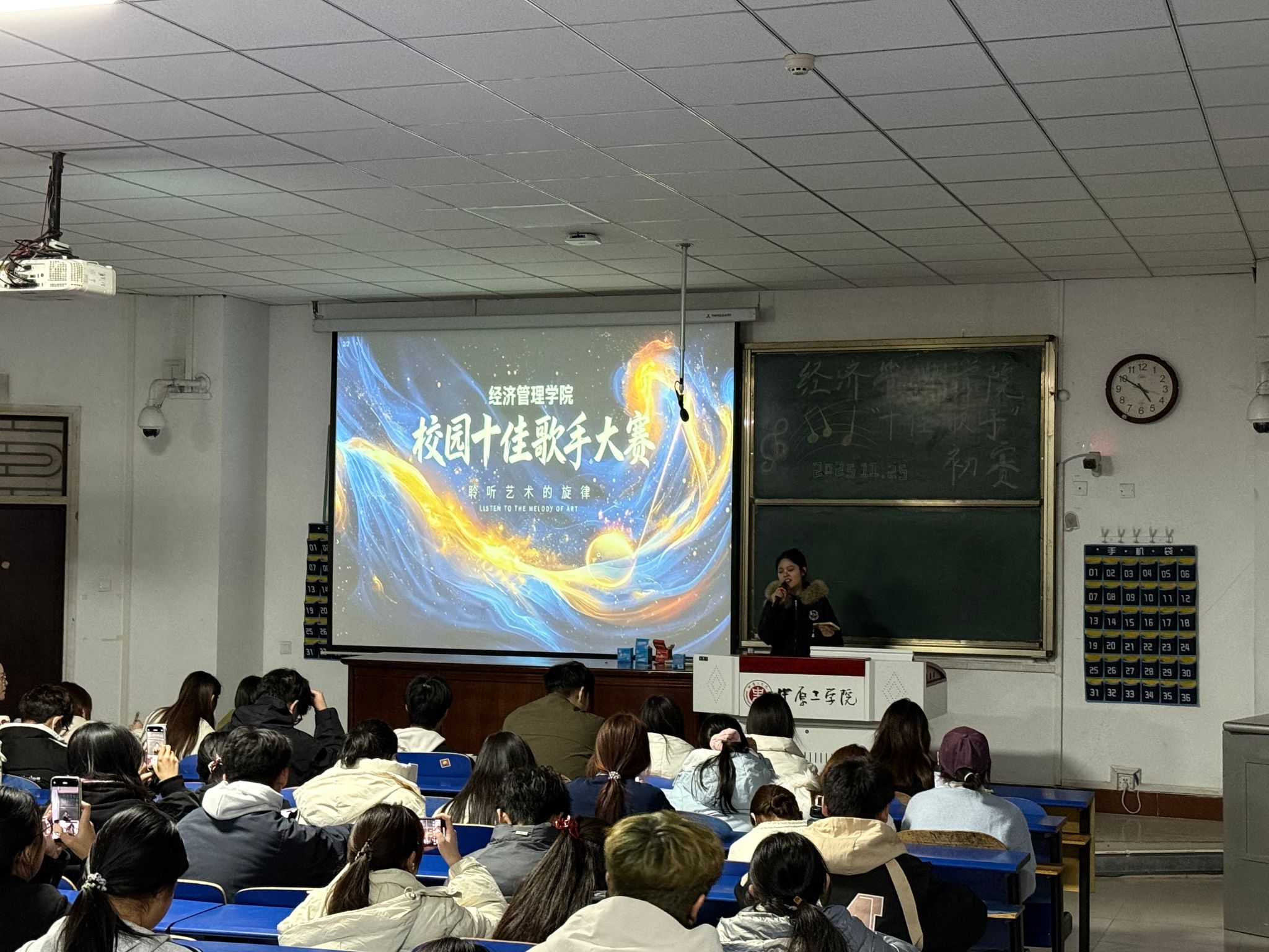 11月25日,williamhill中国校园十佳歌手大赛初赛在龙湖校区四号教学楼101室火热开启。本次大赛以“青春飞扬 音你而唱”为主题,吸引了数百名怀揣音乐梦想的学子踊跃报名,最终多位选手站上初赛舞台,用歌声点燃了冬日的激情,为现场观众带来了一场精彩纷呈的视听盛宴。