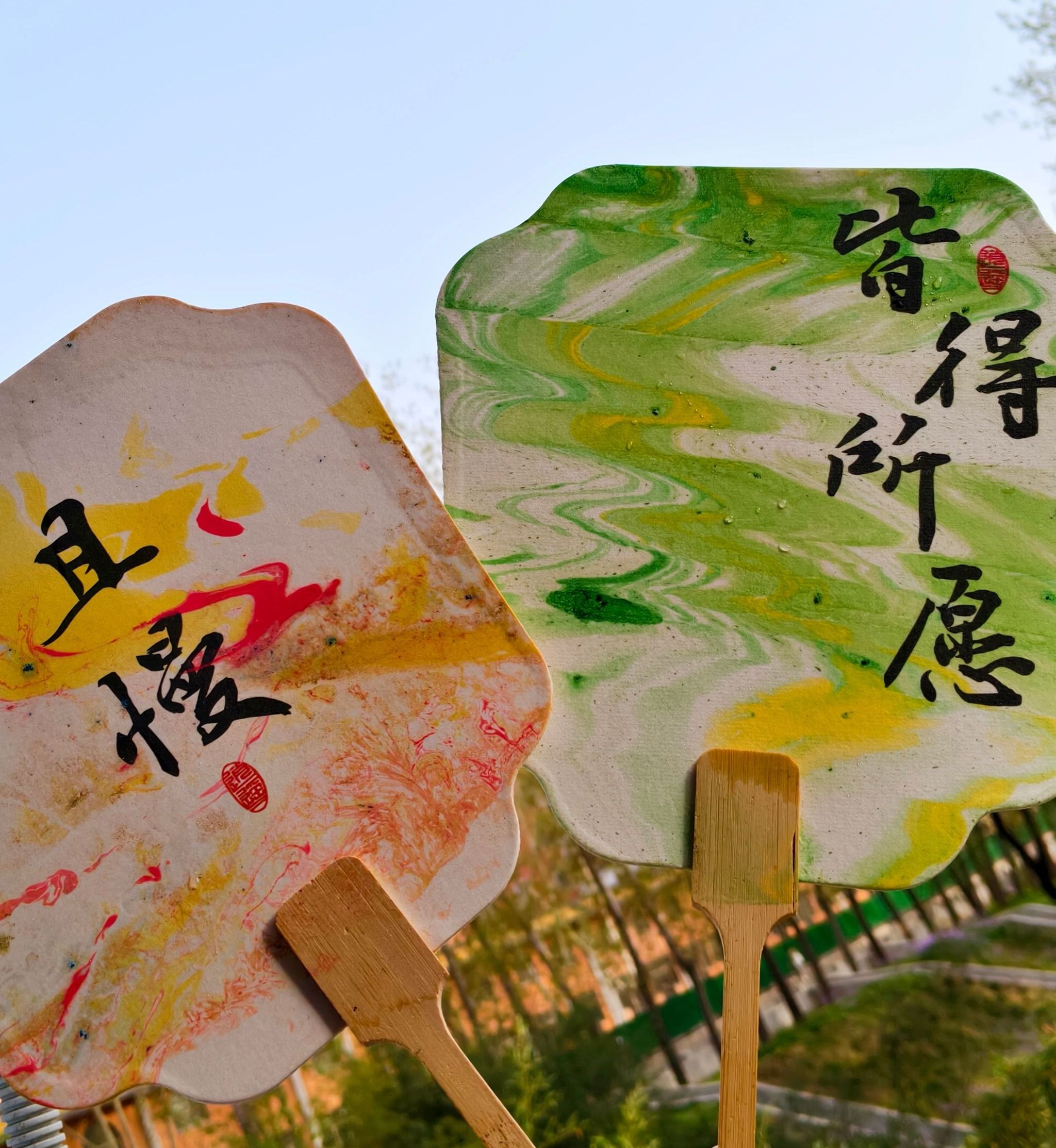 漆扇DIY环节,让同学们化身小小手艺人,在空白扇面上肆意创作。现场准备了各式漆扇基底与创作材料,大家拿起工具随心创作,一把把简约的素扇,在同学们的装饰下变得别致精美、活泼亮眼。拿着亲手制作的漆扇,在春日里轻摇,便能扇来清风,带来丝丝惬意。