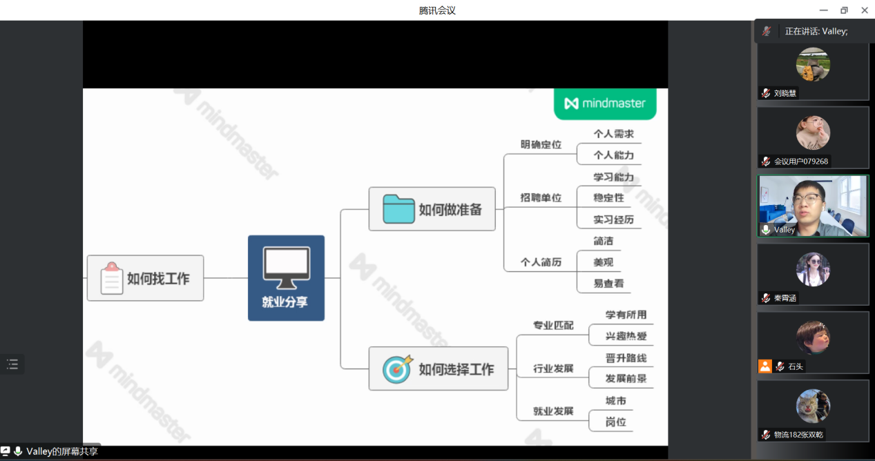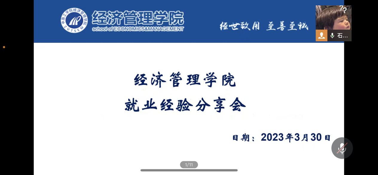 为增强学生的生涯规划与职业发展意识,引导学生树立正确的就业观、择业观,提升学生就业能力,2023年3月30日晚20时,WilliamHill中文于线上举行了“2023届毕业生就业经验分享会”。本次活动邀请了2022届优秀毕业生孙佰灵、张双乾、翁梦婷、任子厚以及郑州大学2017届毕业生中科院在读博士黄亚峰,从简历制作,求职途径,就业经验,求职感悟等方面展开分享。毕业生辅导员郭政良老师主持此次会议,一百余名来自不同专业毕业生参与本次活动。
