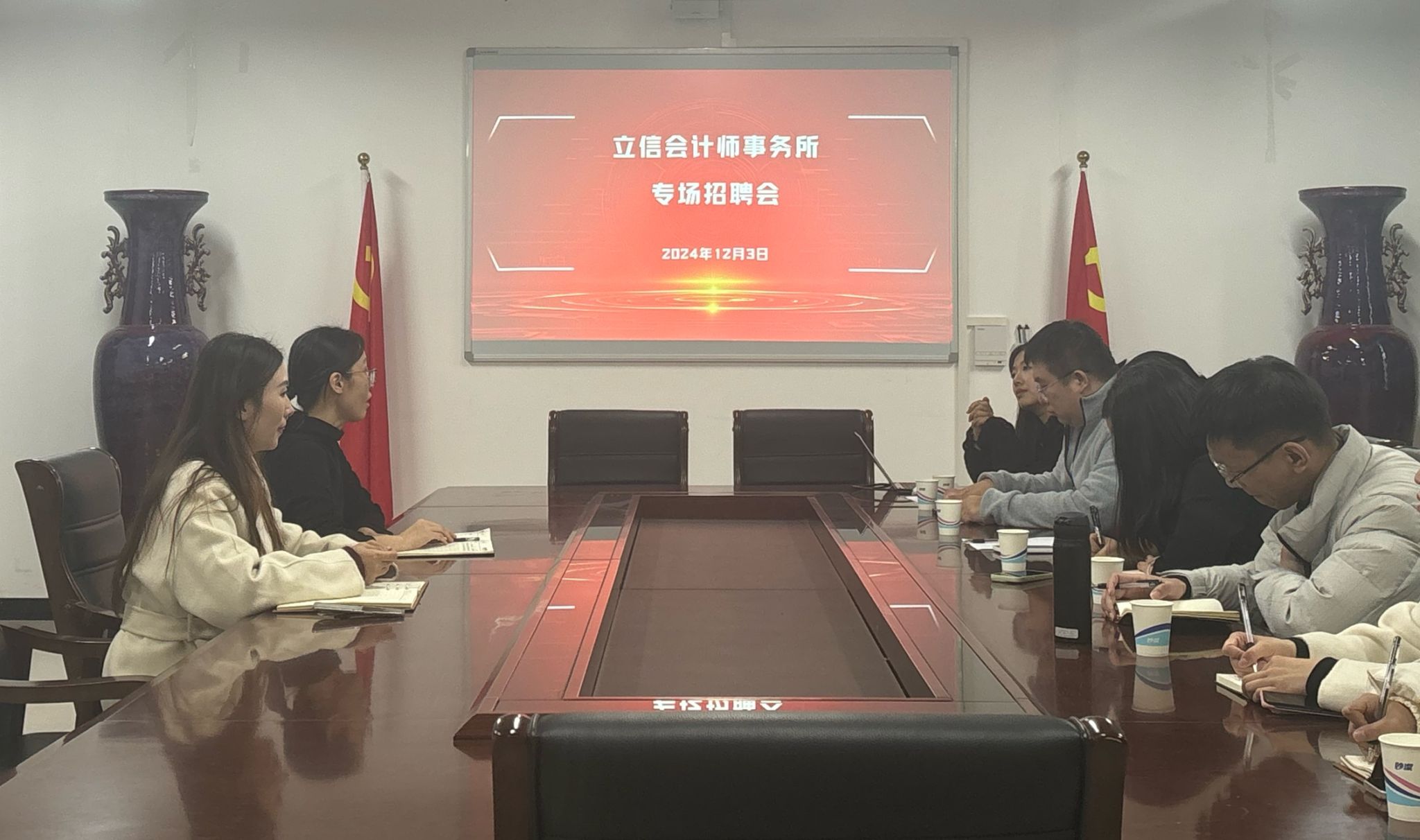 为了更好地搭建学院与企业之间的交流平台,深化校企直通对接,推进毕业生更高质量就业,12月3日下午,WilliamHill中文与立信会计师事务所(特殊普通合伙)在三号组团楼A306会议室召开了访企拓岗洽谈会,并于洽谈会结束后进行了专场招聘会。立信会计师事务所人事经理胡锦婷,学院党委副书记王琳、学工办主任杨文乐参加本次洽谈会。