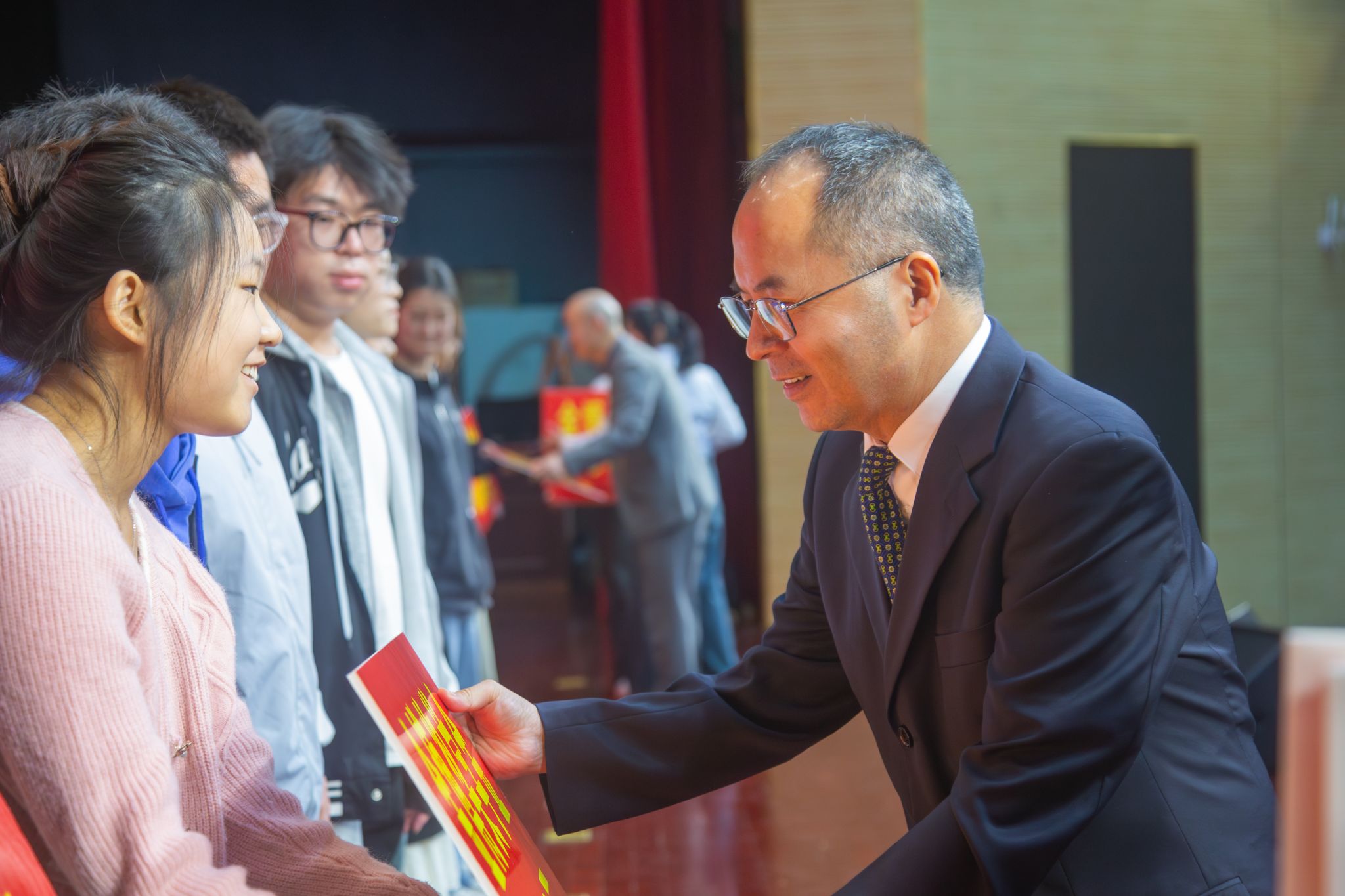 营销2000级校友、北京金博高德教育科技有限公司董事长张向涛向我校捐款100万设立“金博奖学金”,校长夏元清代表学校接受捐赠,并与张向涛共同向50名获奖学生颁发“金博奖学金”。宋晓炜为北京金博高德教育科技有限公司、郑州市超前涂料有限公司进行校外实习基地授牌。方敬永为常州市武进区委政法委督查科科长李世锋、开封市禹王台区人民检察院第二检察部一级检察官关曙光、信阳珠江村镇银行平桥支行行长孟献超、康桥悦生活服务集团有限公司副总裁刘汉星颁发校外辅导员聘书。杨为学为北京金博高德教育科技有限公司董事长张向涛、上海郑阳公关策划有限公司总经理郑阳;郑州楷励教育科技有限公司总经理李新浩颁发校外创新创业导师聘书。