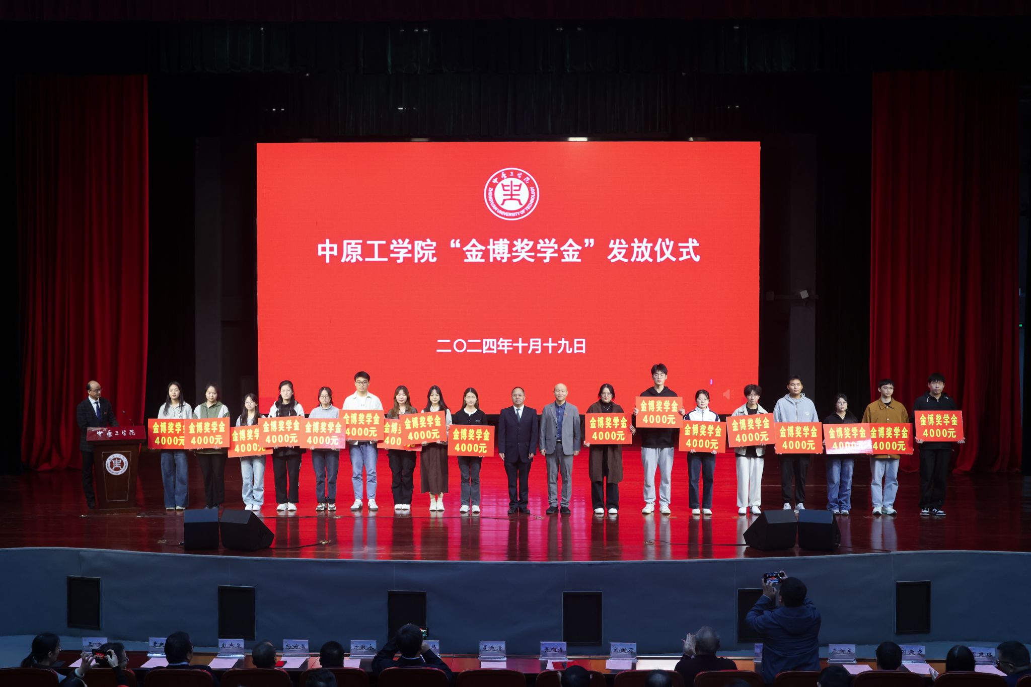10月19 日,williamhill中国龙湖校区3号组团楼学术报告厅内洋溢着热烈而温馨的气氛,我院营销2000级三十余名校友从全国各地重返郑州,相聚母校举办“金博奖学金”捐赠仪式暨校友论坛活动。校长夏元清,党委副书记、工会主席宋晓炜,安阳市慈善总会副会长申朝明,校党委宣传部部长方敬永,党委学生工作部部长、学生处处长刘国存,就业指导中心主任、创新创业学院院长、校友会办公室主任杨为学,学院党委书记李向东,院长赵志泉等领导班子成员,原营销2000级教师代表,学院在校生代表及“金博奖学金”获奖学生等近500人参加活动。